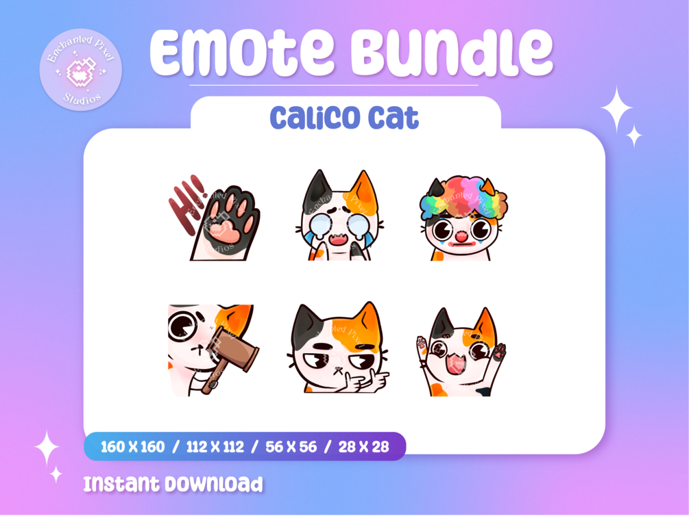 Kawaii Calico Cat Emotes | Cute Calico Cat Emotes | Cat Twitch Emotes | Twitch Sub Emotes | Twitch Discord Youtube Kick Emotes | Streaming